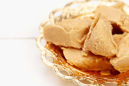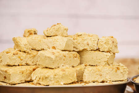 Halvah sweet traditional food dessert made of nuts. Delicious food, tasty healthy snacks concept.