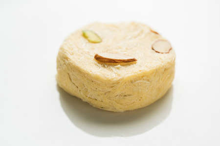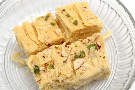 Sohan Papdi - an indian sweet beautifully place in a glass bowl isolated on white