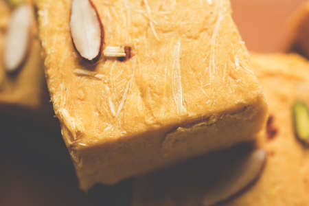Stock photo of Soan Papdi or Soan roll or Patisa or patisha, popular sweet from India. selective focus