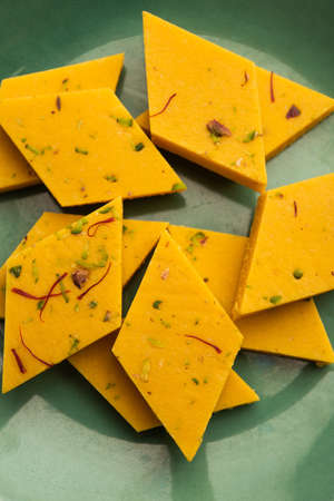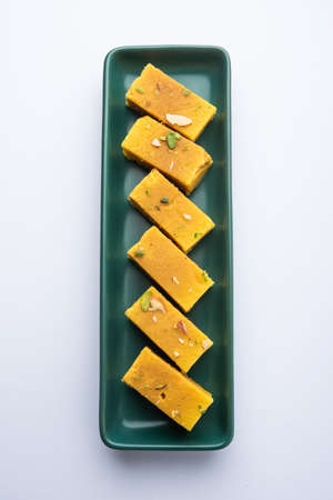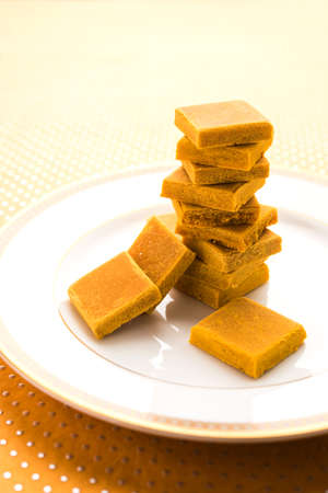 Hapus Amba Vadi / Burfi or Alphonso mango dried Cake or Bar, selective focus