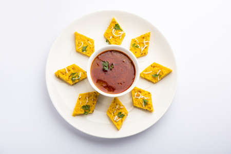Close up shot of Gujarati famous tea-time snack dish Bhavnagiri gathiya in a serving plate. Shot of freshly prepared thikkha bhavnagari gathiya in a serving plate.