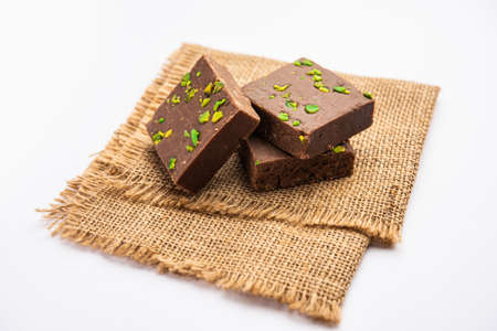 chocolate barfi or choco burfi cake, a tweak to indian dessert or sweet for festivals
