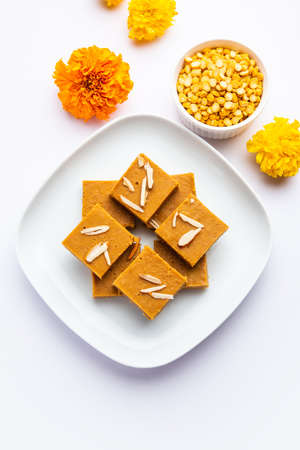 Besan burfi or Mohanthal roasted barfi - an indian sweet