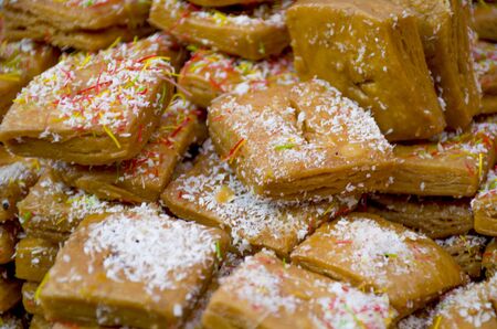 Sweet tasty arabian dessert in a bowl close up