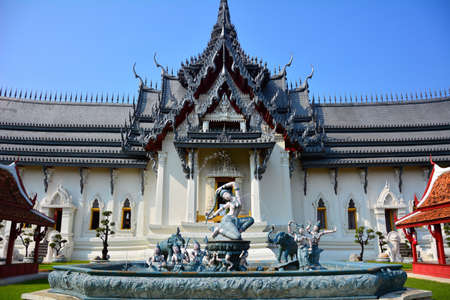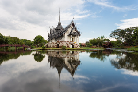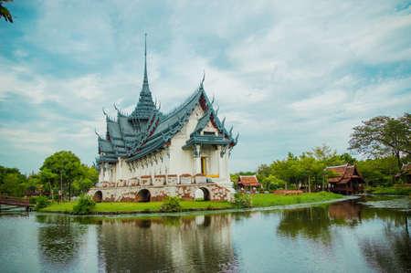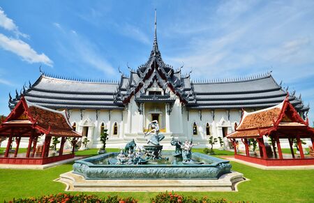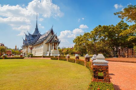 Samutprakarn / Thailand - August 12 2019: beautiful vintage palace in museum of Ancient City for tourist study