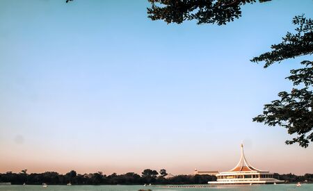 Lake view at Suan Luang Rama 9 Park, Thailand The concept of summer family active recreation.
