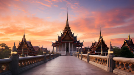 The Wat Phra Kaew at sunset in Bangkok, Thailand.