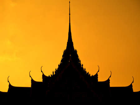 Thai multiple roof tiers in silhouette style