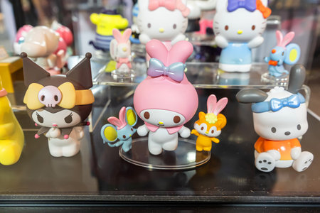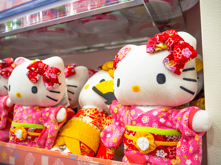 TOKYO, JAPAN JUNE 28 - 2017: Close up of assorted hello Kitty dolls in a toy center in Tokyo
