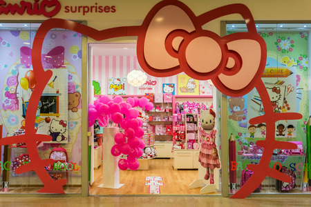 TIMISOARA, ROMANIA - AUGUST 24, 2014: Originally aimed at the pre-adolescent female market, the Hello Kitty product range has expanded from dolls, stickers, clothes, accessories and school supplies.