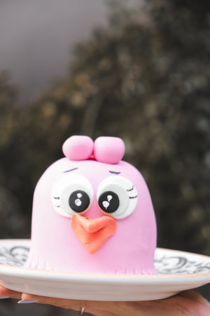 Cute funny snowman made of cream and pastel colored cupcakes
