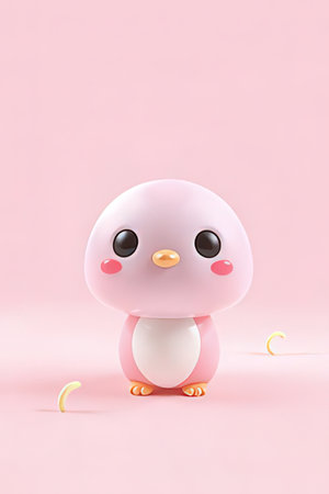 Cute pink baby penguin on pastel pink background. Minimal style.