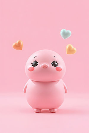 Cute pink hippo with hearts on pink background, 3d render
