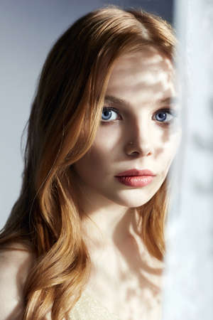 Lovely beautiful young Woman. Sweet Girl in daylight from a window. beautiful female lovely Face