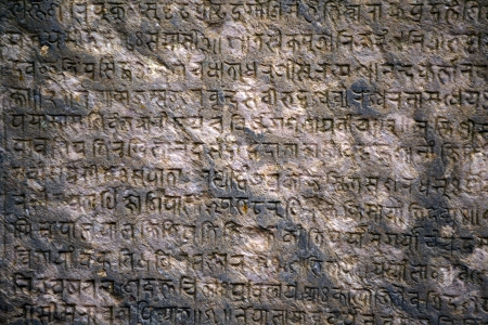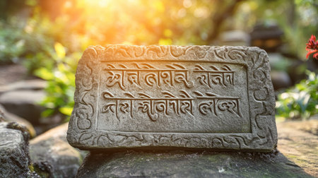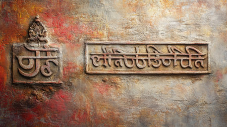 Sacred Hindu mantra inscribed on stone with space for text. Ancient wisdom in stone.