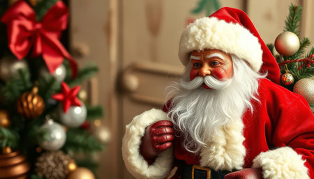 Cheerful Santa Claus with a warm smile celebrating Christmas in a cozy holiday setting during winter festivities