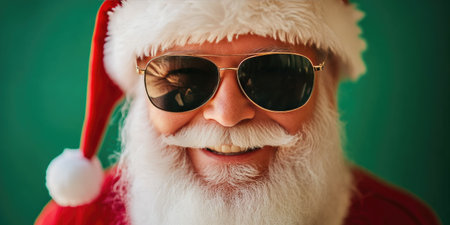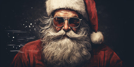 Portrait of Santa Claus in sunglasses over dark background. Christmas concept.