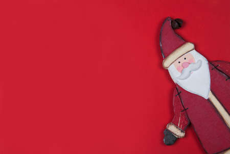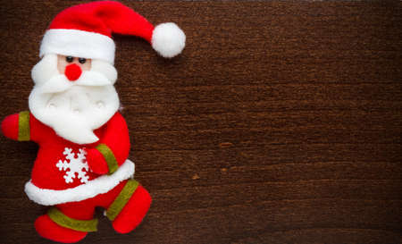 Santa Claus toy on wooden rustic background. Christmas celebration. Winter holidays