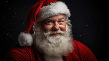 Portrait of Santa Claus on black background. Christmas and New Year concept.