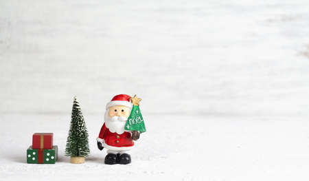 Merry Christmas and happy newyear background with copy space. Santa Claus, christmas tree, gift box with copy space for your text.