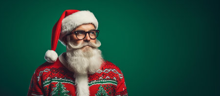 Studio portrait of a trendy Father Christmas character wearing a festive christmas ugly jumper