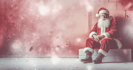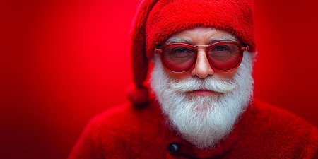 high resolution photo realistic of stylish modern santa claus on red plain background with copy space