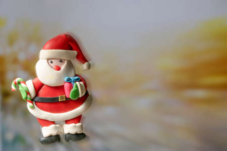 Happy Santa Claus Doll on Christmas time, tinsel and balls, festive background,