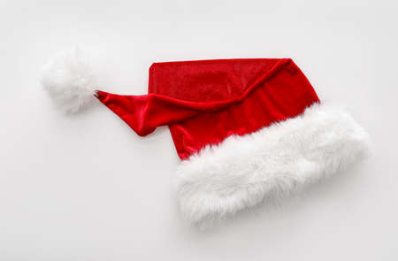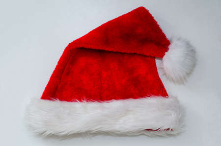 Red Santa Clause hat on white background with drop shadow and copy space for text