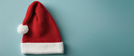 A vibrant red Santa hat featuring a white fur trim and pom-pom, set against a soft blue backdrop, perfect for capturing the essence of festive celebrations.