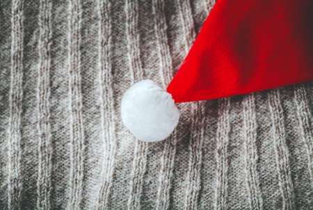 A cozy red Santa hat rests against a soft background, embodying the spirit of Christmas and holiday celebrations. Ideal for festive decor and joyful gatherings.