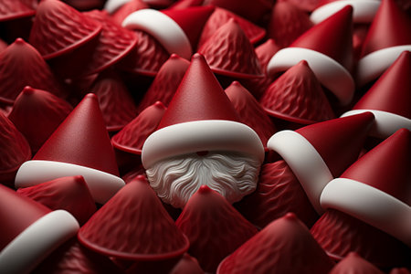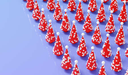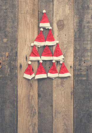 Christmas tree shape of many hats of Santa, Seasonal concept background with space for your text