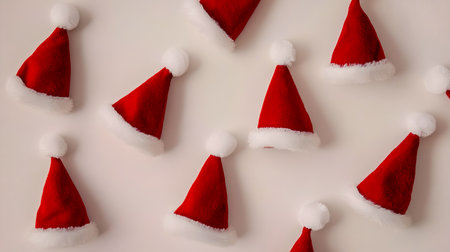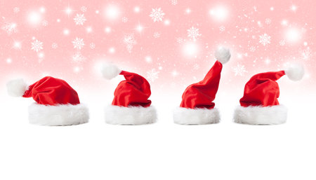 Festive Christmas Background with Santa Hats on Pink Surface for Holiday Design Elements AI Generative