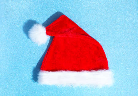 Christmas and New Year holiday background. Santa hat. Fairytale background for winter holidays. Place for text.