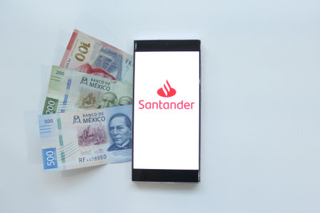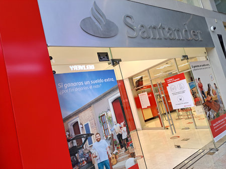 Mexico City, Mexico - Feb 22, 2025: Banco Santander offers financial products and services, including commercial banking, investment, and brokerage