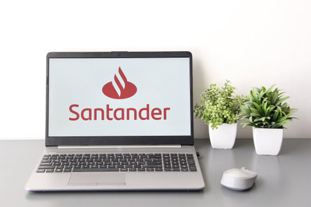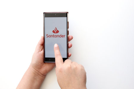 July 24, 2024 Lublin Poland. Photo from the trip. Santander bank logo