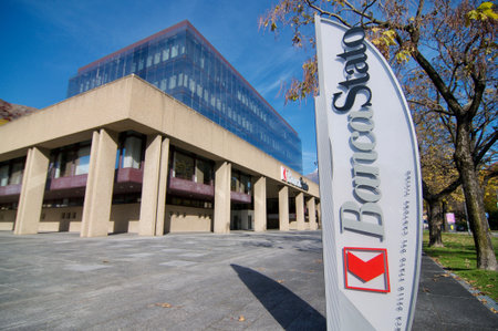 Bellinzona, Switzerland - 31st October 2020 : BancaStato bank or Banca dello Stato del Cantone Ticino is a Swiss cantonal bank which is part of the 24 cantonal banks serving Switzerland's 26 cantons