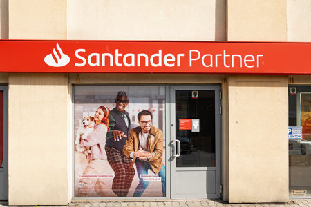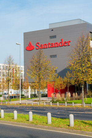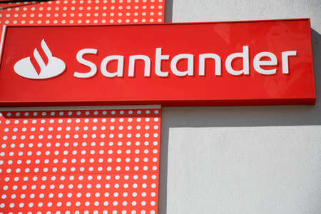 Hamburg, Germany - August 11: the logo of the brand Santander Consumer Bank on August 11, 2014 Hanburg