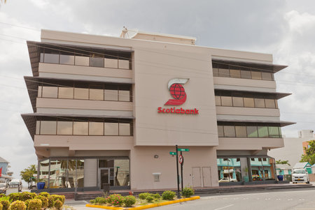 GEORGE TOWN, CAYMAN ISLANDS - SEPTEMBER 19, 2015: Office of Scotiabank in George Town of Grand Cayman. Scotiabank is the third largest bank in Canada by deposits and market capitalization