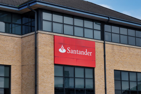 UNITED KINGDOM - JUNE 18TH 2015: A sign for a Santander Bank outlet in the UK on 18th June 2015.