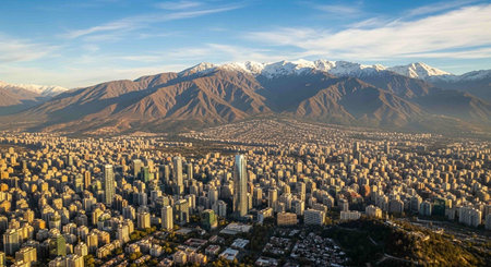 Panoramic view of Santiago de Chile and Los Andes mountain range