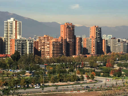 Skyline of buildings at a wealthy neighborhood in Las Condes district, Santiago de Chile