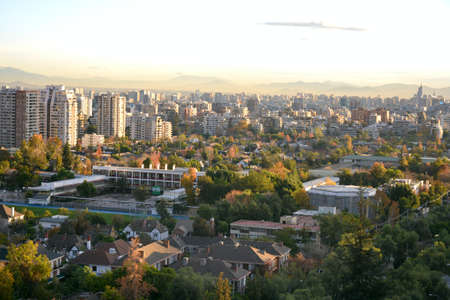 Panoramic view of the city of Santiago de Chile at sunset