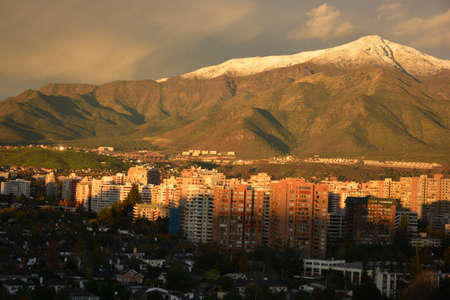 Santiago, June 2013. Financial and residential district Las Condes with The Andes mountains covered with snow on background