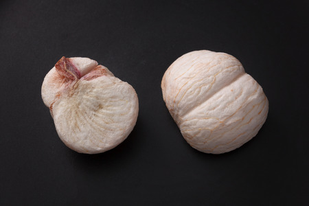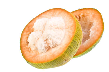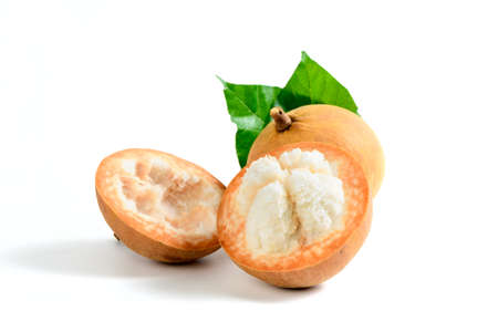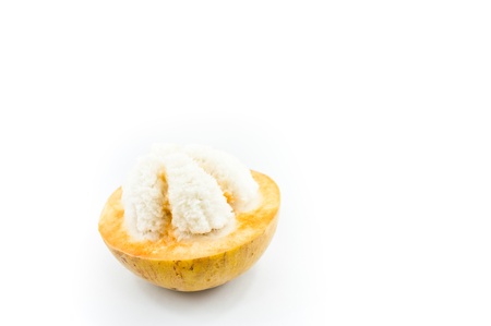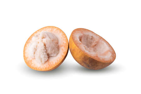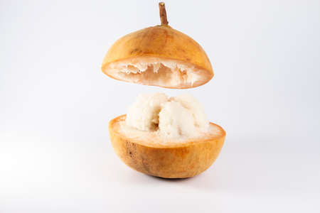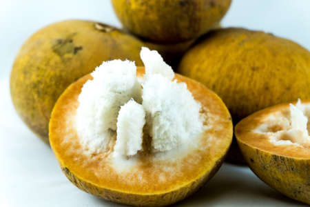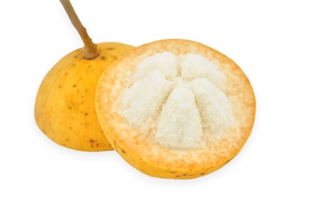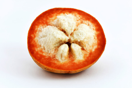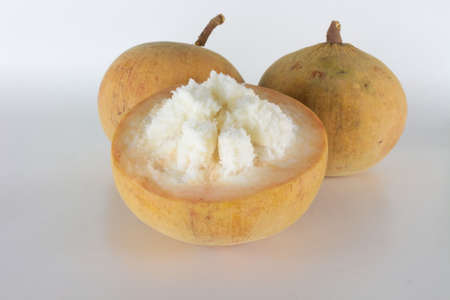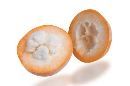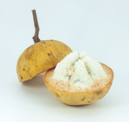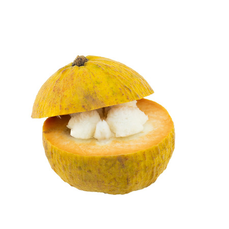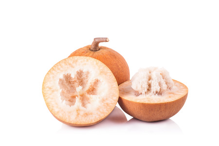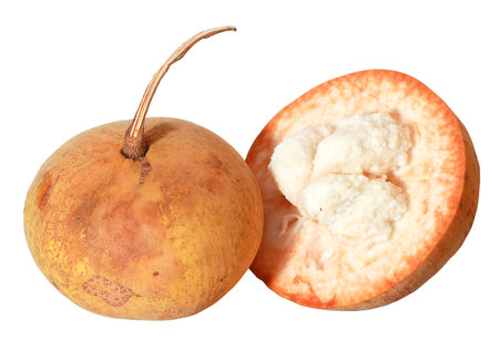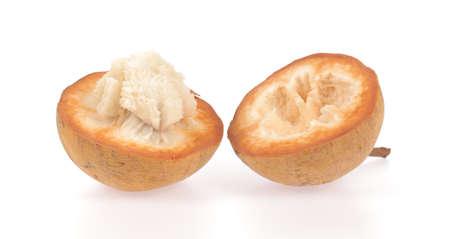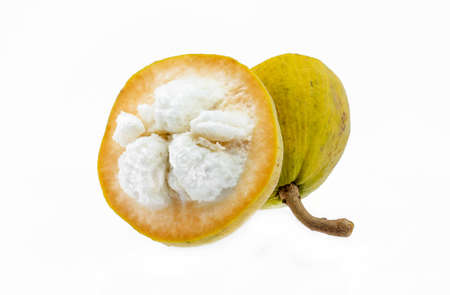 Half Santol isolated pn white background, Santol has sour taste and the middle of santol is sweeter. It is very famous fruit of Lopburi Province. THAILAND