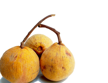santol round fruit, yellow skin, thick flesh, edible The seeds are white. Thai fruit on a white background