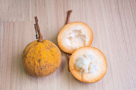 Ripe santol fruit on wooden background,Tropical fruit