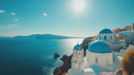Experience the breathtaking beauty of Santorini with stunning blue domes overlooking the serene ocean. This picturesque landscape captures the essence of Mediterranean life and travel.