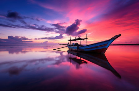 Holiday in Bali, Indonesia - Reflection Sunrise in Tanjong Benoa with boat