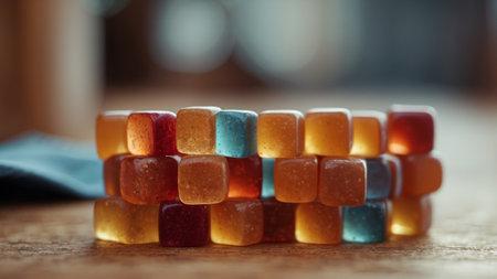 AI Generated. table spoon sugar tone retro wooden color cubes Close cane