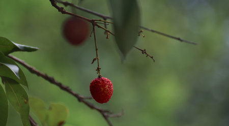 Strawberry Tree, Arbutus unedo with strawberry like dry fruits in hanging bunches, rough on surface